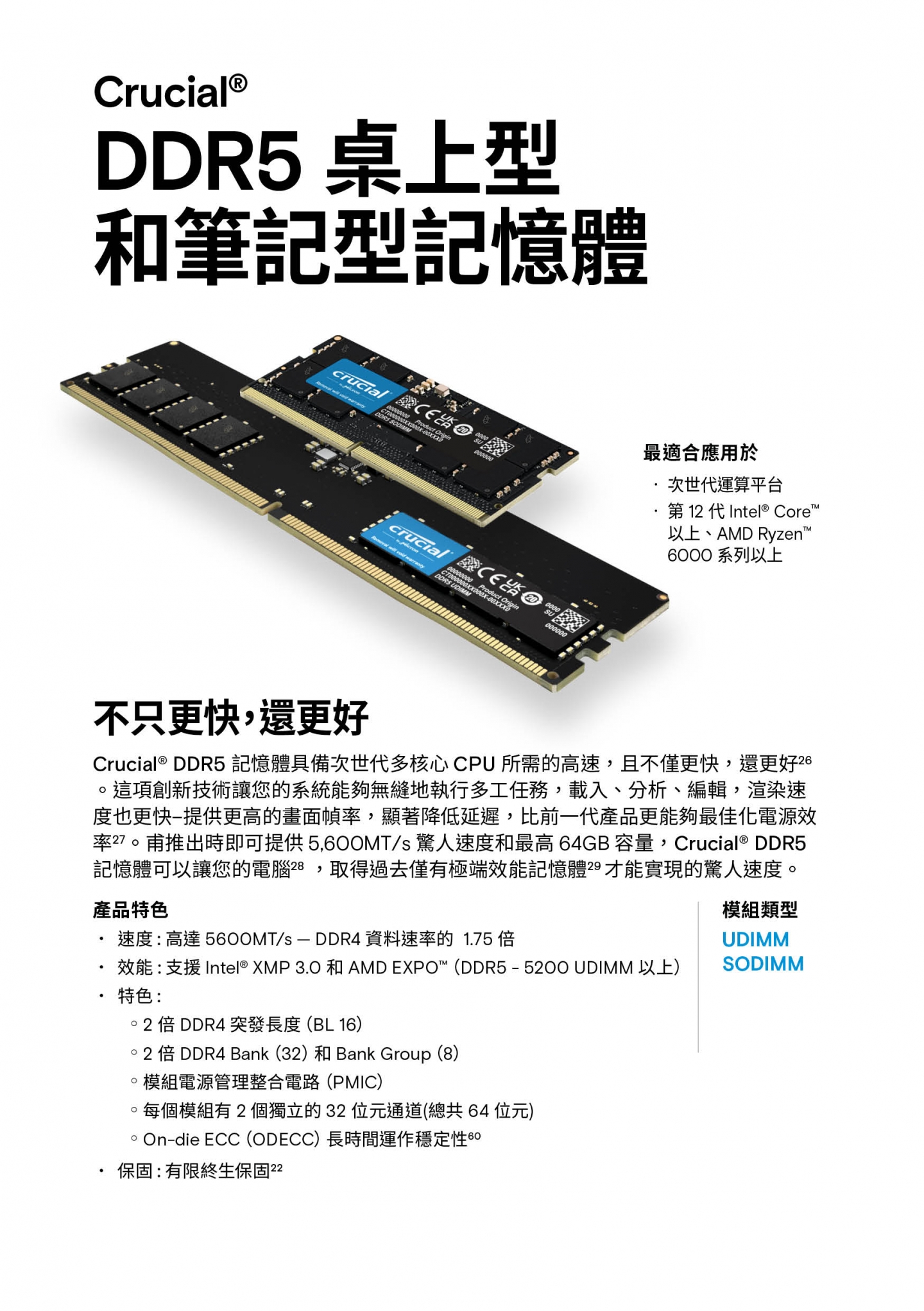 容量(for UDIMM) 8GB、16GB、32GB 、64GB
